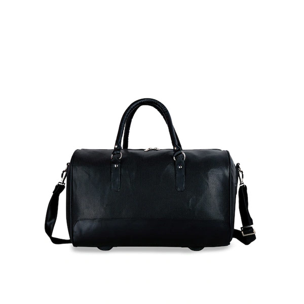 Black Solid PU Leather Travel Duffel Bag
